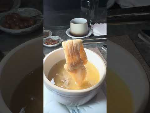 接著是我都懶得稱讚的十年雞湯,也是讓我一次又一次走進法租界的原因。得過國內外無數獎項的法租界十年雞湯,一反業界強調老母雞熬湯,它是用公雞熬煮8-10小時為湯底,再加入母雞燉煮一個半小時,除了海鹽外不加任何調味料,及食材,就能燉煮出帶著滿滿膠質的雞湯鮮美。